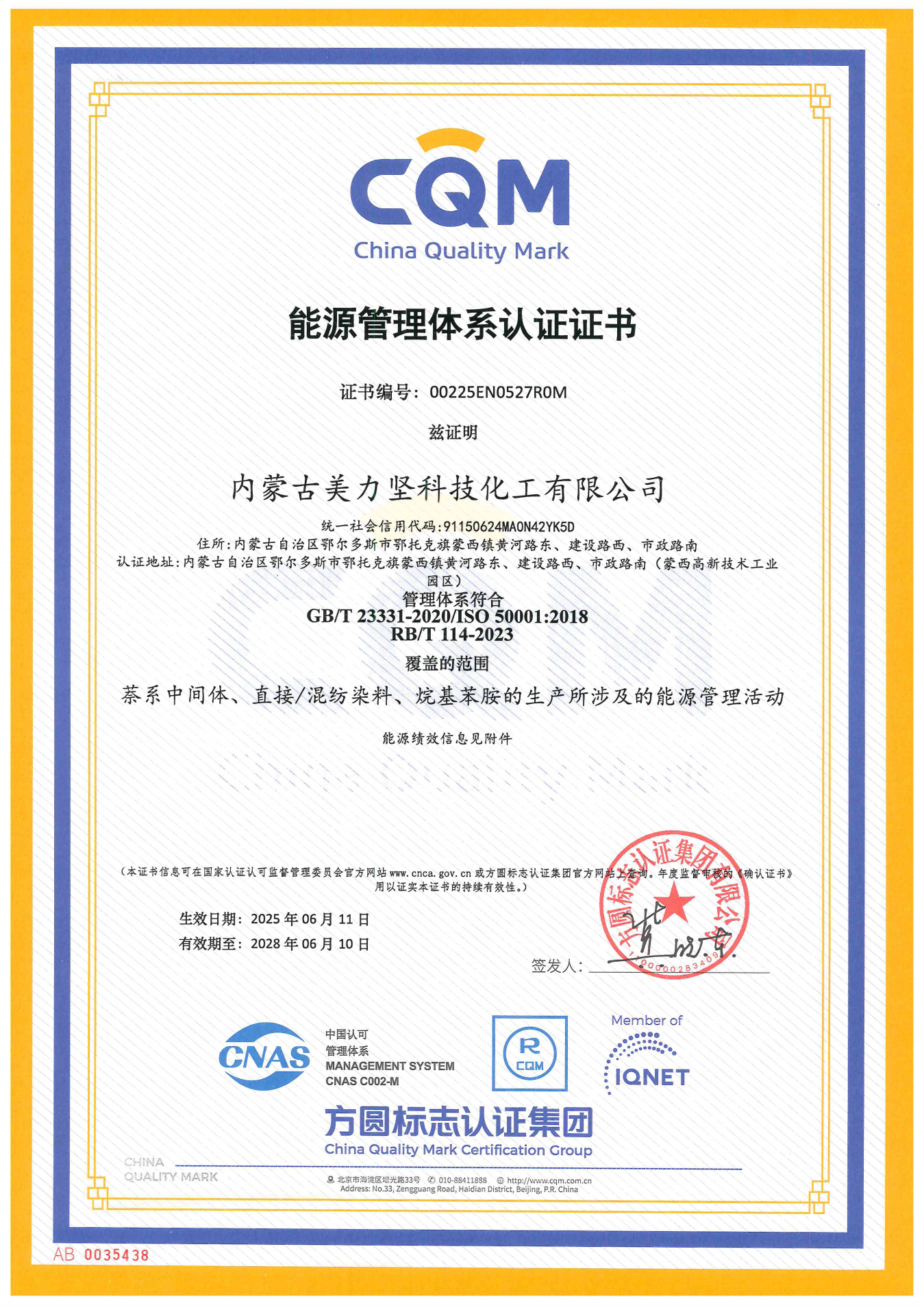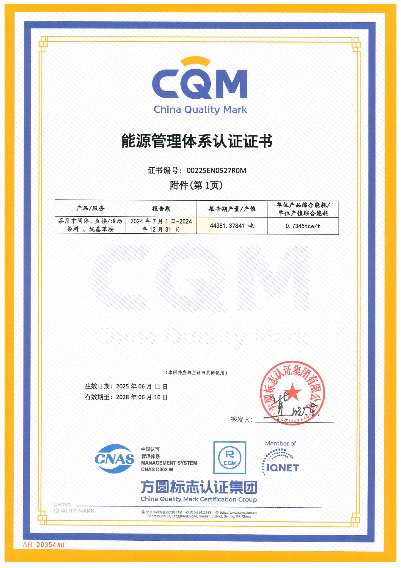 能源管理体系认证证书(附件)